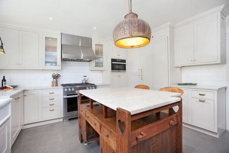 Designed especially in the historic community of Mission Hills, we made every effort to keep with the original style of this gorgeous three-level home, built in the early 1900's. The triple casement window over the sink provides for much needed natural light. Additionally, we renovated an adjacent guest bath in similar style & design.